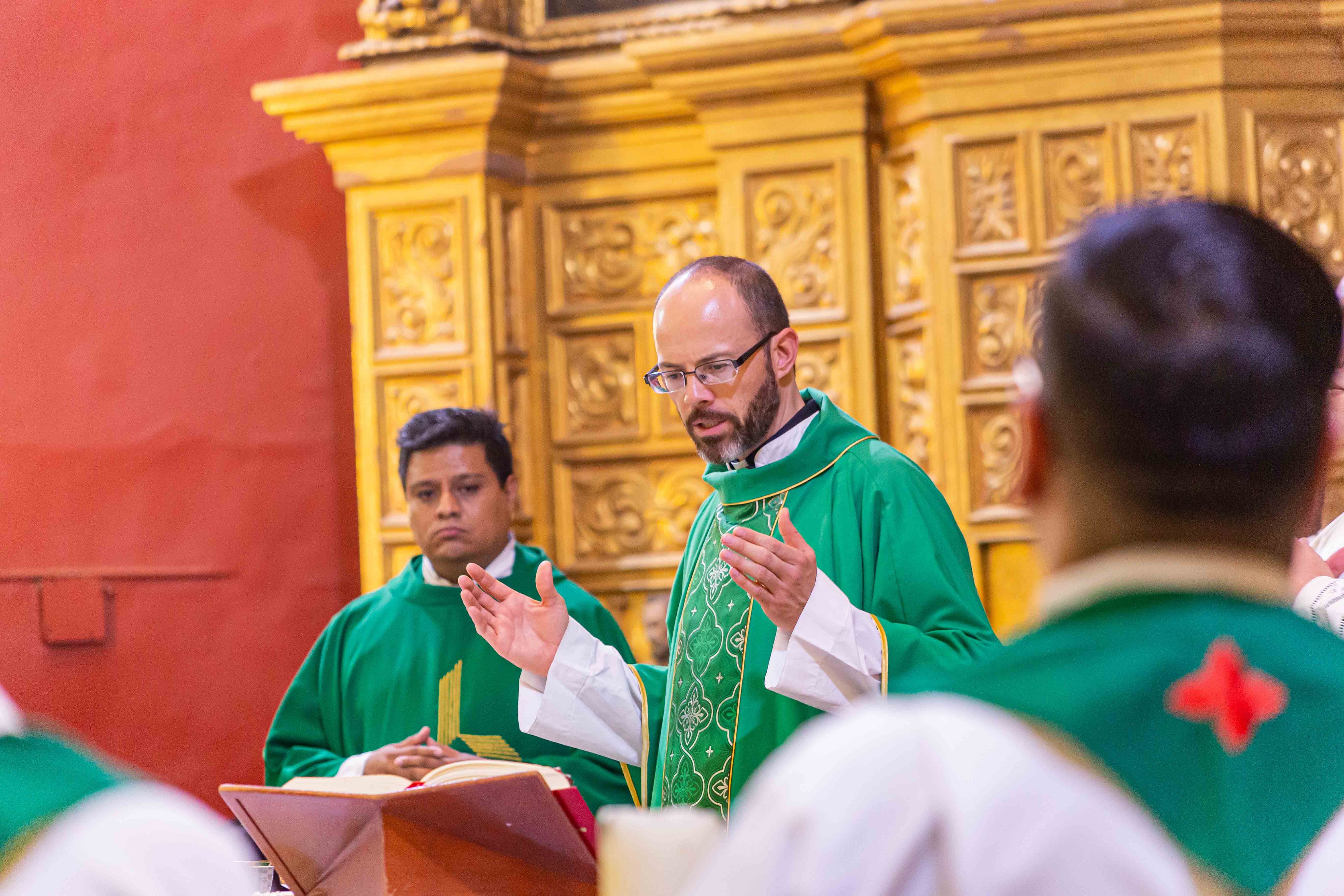 El día de ayer estábamos celebrando la Misa de clausura de curso y el padre rector estaba predicando en la homilía y recordaba la importancia que tuvo en él su mamá, y hoy también, imposible que no me evocara también mi vocación, ese llamado que experimenté. En mi caso, cuando fui al preseminario, me dio miedo y dije: “Mejor lo pienso bien. Mejor ya después de que termine la carrera lo pienso bien y entro al seminario, al cabo si Dios me llama me seguirá llamando”. Y cuando llego a casa lo primero que hago es saludar a mi mamá y me dice: “¿Qué pasó, hijo?”, y le digo: “Pues fíjate que lo pensé y mejor entraré después”. Y me cuestionó, de esas veces que no te lo imaginas, uno pensaría que te diga: “Ay, mijito, está bien, ya luego será…”, no. Me cuestiono que si estaba huyendo de la llamada del Señor, y me cayó como un balde de agua fría, no supe que responderle. Porque a esa llamada tan clara que había experimentado, no me atreví a responderle afirmativamente como Mateo, que lo hizo de manera inmediata. Por eso me tocó después ir a hablar con el rector de aquel entonces y bueno, tuvo misericordia de mí y me aceptó, gracias a Dios.